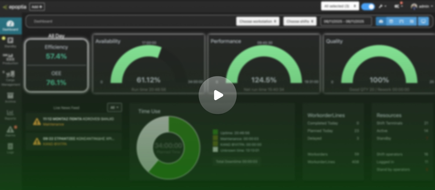 Epoptia MES is a flexible and robust industrial solution. The company's team adapts in any production process, optimizing and featuring production capacity to the maximum.