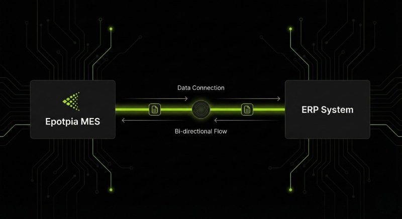 Όσον αφορά το ERP, υπάρχει δυνατότητα αμφίδρομης επικοινωνίας. Στείλτε όλες τις απαραίτητες πληροφορίες σχετικά με τις παραγγελίες παραγωγής σας, αφήστε την Epoptia να συλλέξει πληροφορίες παραγωγής, όπως πραγματικές καταναλώσεις, χρήστες, χρόνους υλοποίησης, και να τις στείλει πίσω στο ERP ή το WMS σας χρησιμοποιώντας την τεχνολογία Webhook.