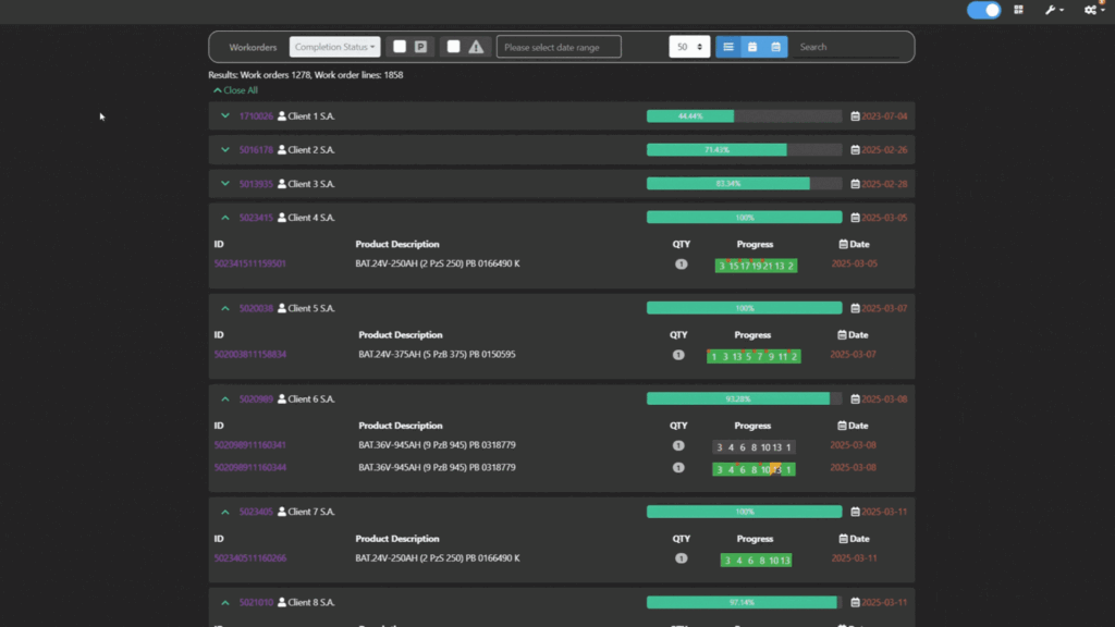 Με μια γρήγορη ματιά δείτε το ποσοστό ολοκλήρωσης των εντολών παραγωγής σας και τη διαθεσιμότητα των πόρων σας.