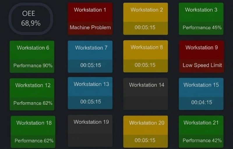 Οι οθόνες επισκόπησης του λογισμικού είναι συνοπτικές. Δείχνουν σε πραγματικο χρόνο την αποδοτικότητα, τη χρήση χρόνου, τις καθυστερήσεις και άλλες σημαντικές πληροφορίες.
